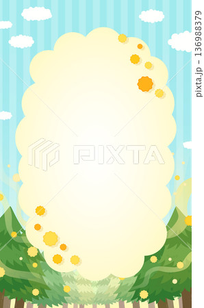 飛散する花粉とスギ並木と青空のイラスト_縦