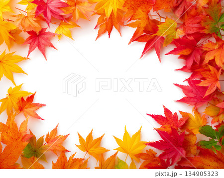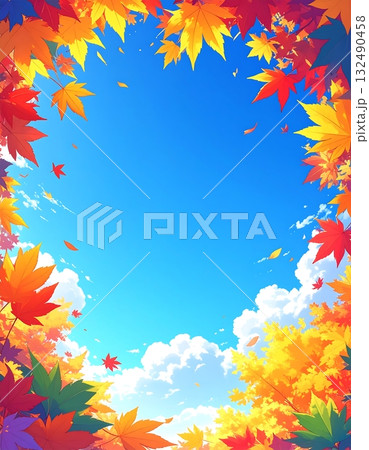 水彩風の紅葉フレームイラスト 秋色の背景デザイン