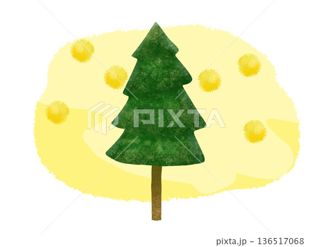 花粉症の季節のイラスト、杉の木とスギ花粉
