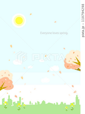 春の背景素材 都市 桜 菜の花 シンプルでお洒落な背景イラスト