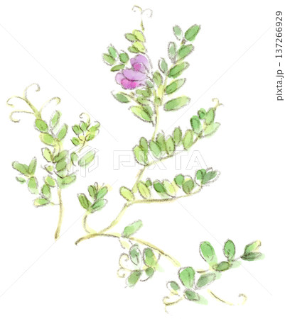 早春〜春の植物、カラスノエンドウの赤紫の花の水彩画イラスト