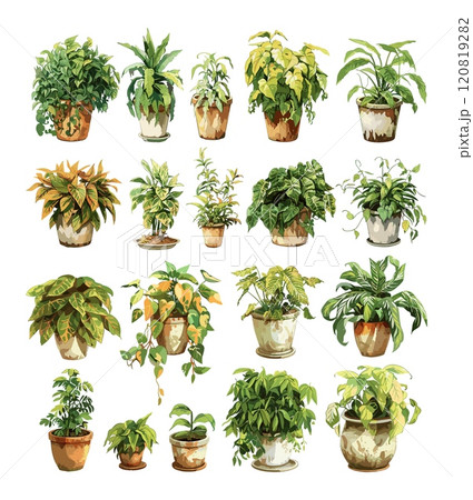 Cartoon wilted houseplants. Various stages of withering, plants in pots with wilting leaves, arid dry soil fading herb bushes dehydration, flora remains no water botany disease, isolated artworks