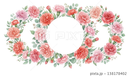 バラの装飾フレーム 水彩画風 ツルバラのイラストレーション