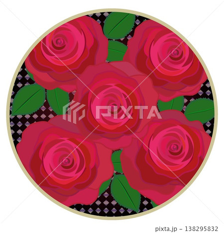 円形ハーレクインチェック柄のついた赤いバライラスト