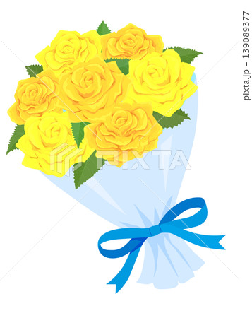 黄色いバラの花束とリボン(背景透過) 父の日のプレゼントのイラスト素材