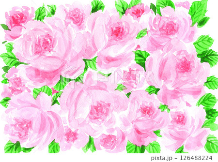ピンク色系の水彩画の花 中央はコピースペース 生成Aiイラスト