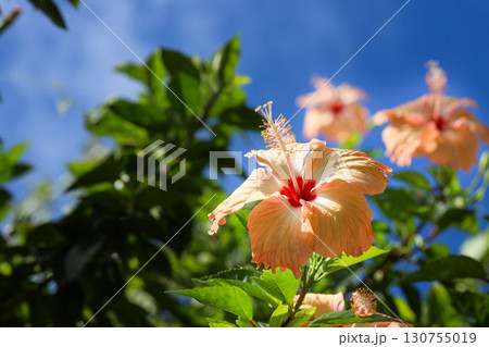 南国の陽射しを浴びるハイビスカス