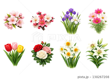 春の花 水彩イラストセット(桜・チューリップ・ポピー・アイリス他)