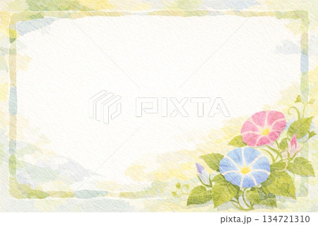 水彩画。水彩タッチの朝顔ベクターイラストフレーム。夏の朝顔フレーム素材。