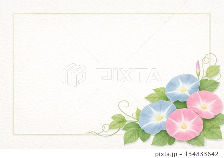 水彩風朝顔フレーム素材|中央スペースあり・植物イラスト
