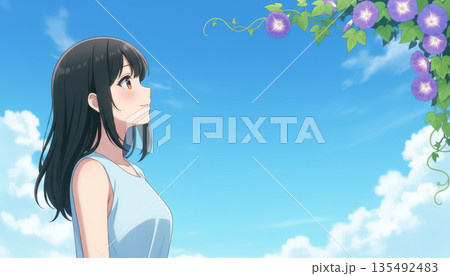 やわらかな印象のアサガオと青と水色と紫のグラデーション