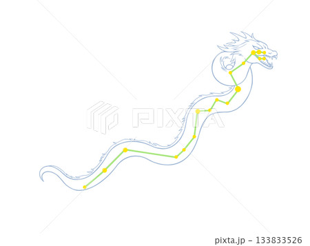 うみへび座のモノクロ線画イラスト(星座線あり)