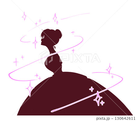 ピンクの髪の美しい少女がハートを抱いているシルエットイラスト。