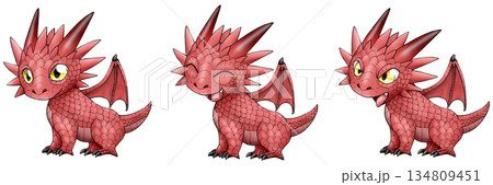 翼を広げた横向きの赤いドラゴンの子供 表情差分付き