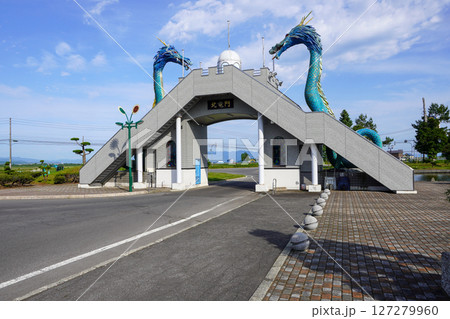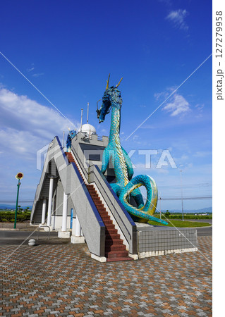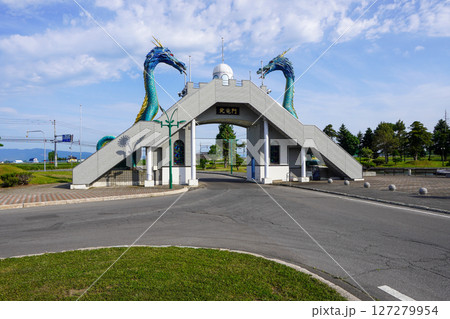 温泉津温泉で見かけたヤマタノオロチの和風オブジェ – 神話が息づく町の一角