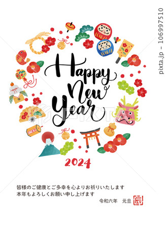 2024年辰年年賀状 イラスト素材