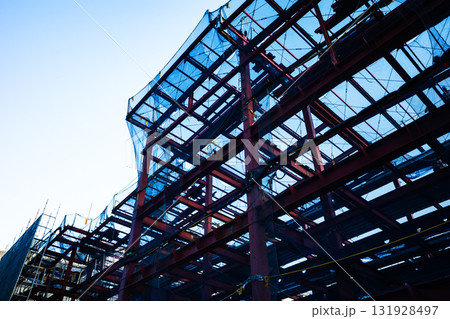 鉄塔が組立てられた建設中のビル 高彩度コントラスト
