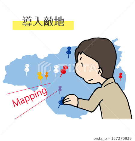 日本地図のビッグデータ可視化と市場分析を行うビジネスパーソンのイラスト