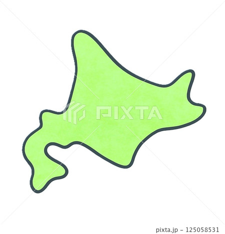 北海道マップのイラスト、アウトラインあり。択捉などの島あり。