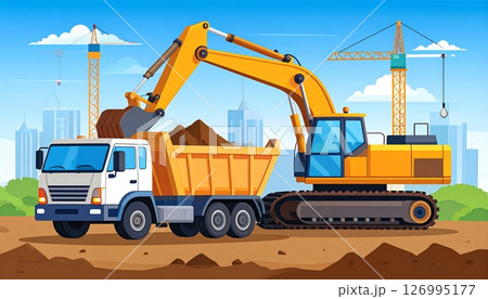【Adobe Firefly】ショベルカー・ダンプトラックの作業風景7