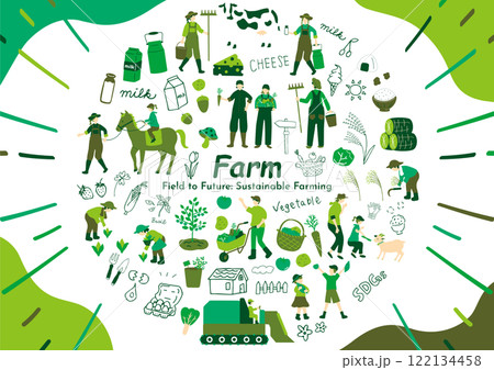 酪農・農業のフラットアイコンセット(牛・トラクター・ミルク・風車など)