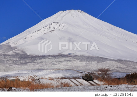 降雪富士に戦車が... びっくり!