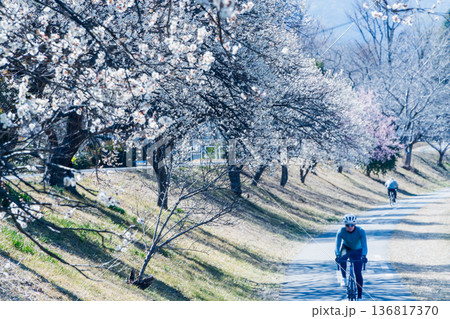 梅が咲くサイクリングロード