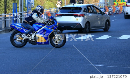 大型アメリカンバイクで横浜をツーリング 人物なし