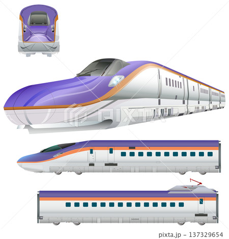 おもちゃ風の新幹線E6系のイラスト5両セット