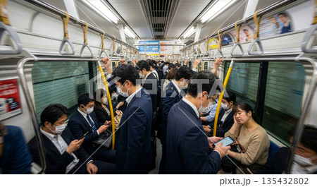 地下鉄の車内(マスク・混雑)