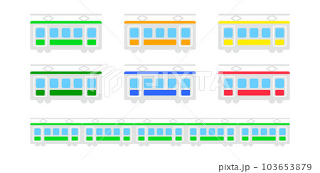 日本の電車、鉄道のかわいいおもちゃ、シンプルアイコンイラストカラー素材