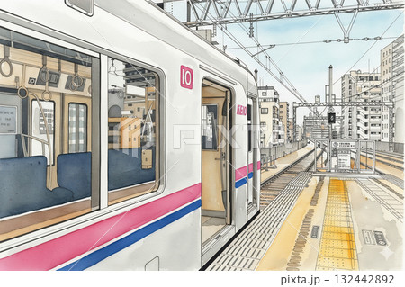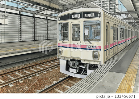 京王線 新宿行き 水彩画 ペン画 電車 府中駅 京王 5000系 京王線 新宿行き 回送 電車