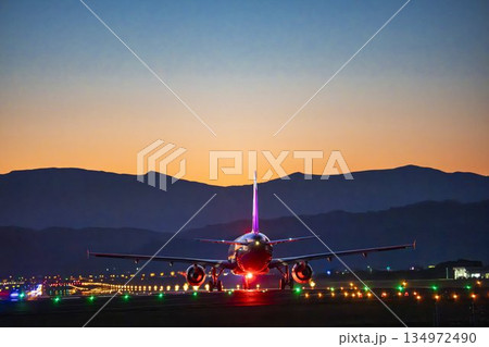 夕暮れの仙台空港 タキシング中の飛行機 宮城県名取市