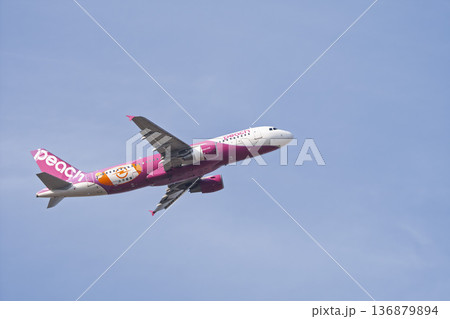 夕暮れの仙台空港 離陸中の飛行機 宮城県名取市