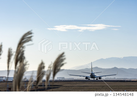 冬の仙台空港 離陸中の飛行機 宮城県名取市
