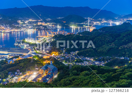(長崎県)稲佐山山頂展望台から眺める長崎港と街並み 夕景