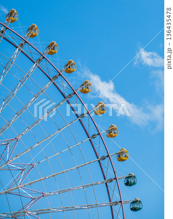 青空にそびえる観覧車・開放感あふれる春景色