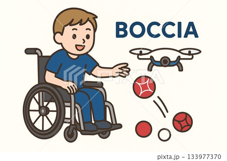 車いす利用者がボッチャを楽しむ姿を描いたスポーツイラスト