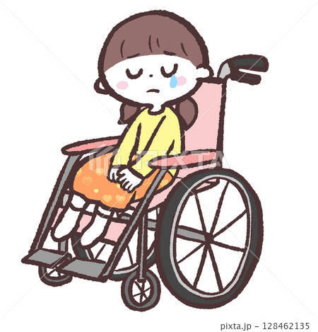 車椅子を嫌がる女の子のイラスト