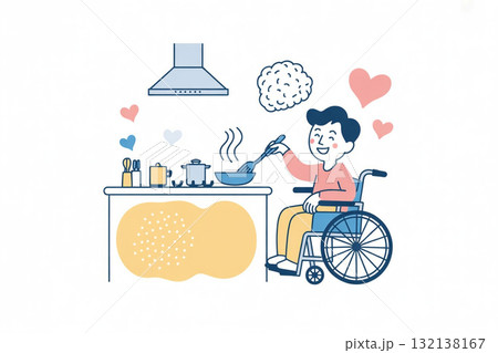 車いすの男性が自宅キッチンで調理、自立した日常生活