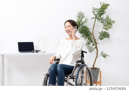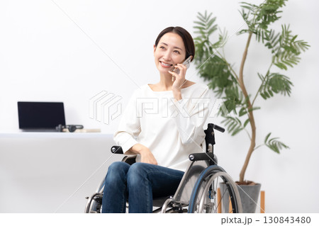 ビジネス 車椅子 チーム 歩く 後ろ姿