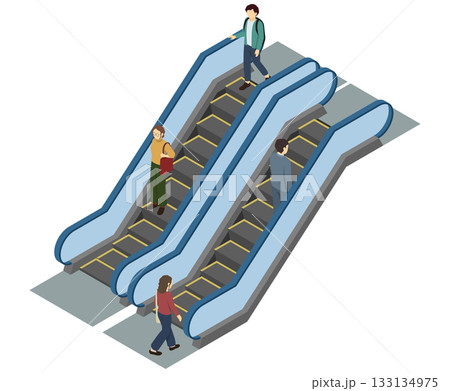 アイソメトリックイラスト:エスカレーターを使う人々