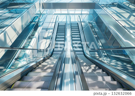 未来的デザインのエスカレーターと抽象的な空間