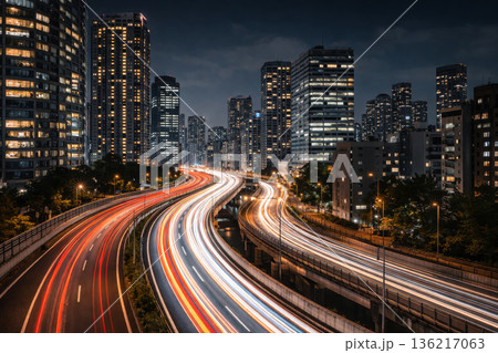 都会の夜景を駆け抜ける、煌めく光のドライブ
