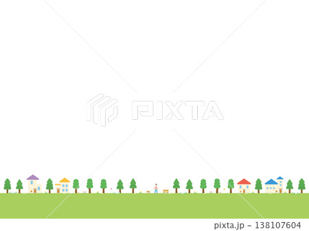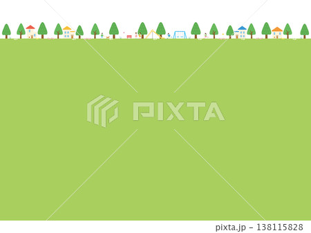 アクセントカラーグリーン 街並みイラスト(ワイド・背景黒)