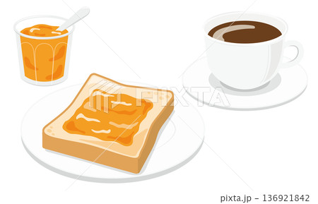 ブルーベリージャムトーストとコーヒーの朝食セット モーニングイラスト