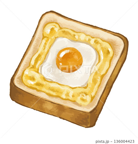 目玉焼きが乗ったトーストの水彩風イラスト 生成AI