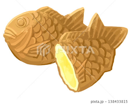 水彩で描いた焼きたての美味しそうなたい焼きクリームのイラスト素材