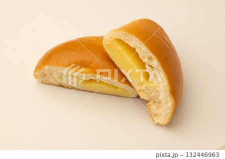 日本の庶民的な菓子パンの1つ、クリームパンの単品画像