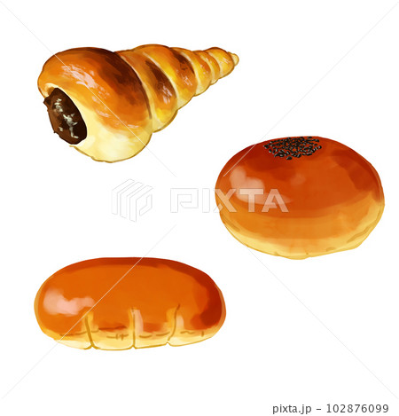 手描き水彩のクリームパンとあんパンとチョココルネイラストセット